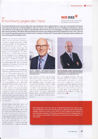 „Natürlich freuen wir uns über diese Entwicklung und die Bestätigung einer konsequent an unseren Kunden ausgerichteten Unternehmensphilosophie aller Gesellschafter“, so der DIE6-Aufsichtsratsvorsitzende Heinrich Grübener zur aktuellen Entwick-lung. „Wir führen dies auf unsere vorausschauende Orientierung an den Bedürfnissen der Märkte zurück, auf deren Veränderungen wir immer zeitnah und bedarfsorientiert reagiert haben und auch weiterhin werden. Der Zusammenschluss aller 15 Mitgliedsunternehmen zum Profi-Netzwerk DIE6 zeigt gerade in einem für die Werbemittelbranche relativ schwierigen Umfeld, dass Gemeinsamkeit auch mit wirtschaftlicher Stärke gleichzusetzen ist.“