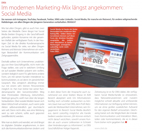 Wie man es dreht und wendet, wir sind längst im digitalen Zeitalter angekommen, in dem sich die Kommunikationsformen ändern und in dem diese Form der Ansprache auch zunehmend von einer breiten Masse im B2B Bereich akzeptiert wird. Um Informationen künftig noch schneller austauschen zu können, baut man auch bei DIE6, dem Profi-Netzwerk der Werbeartikel-Unternehmer, sein Engagement im Bereich Social Media deutlich aus, damit zukünftig möglichst alle Kanäle bedient werden können. „Wir können einfach nicht darauf verzichten, sowohl unsere Kunden als auch unsere Lieferanten in Echtzeit über Veränderungen zu informieren“, so DIE6 Geschäftsführer Holger Kapanski.