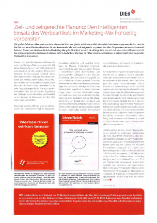 Immer noch wird der Werbeartikel-Einsatz in seiner nachhaltigen Wirkung unterschätzt. Mit einem Erinnerungswert von 59 Prozent erzielt er im Vergleich mit allen anderen Medien den höchsten Erin-nerungswert. Ermittelt durch eine repräsentative Umfrage des Ge-samtverbands der Werbeartikelwirtschaft. Mit 85 Prozent erreicht der Werbeartikel übrigens mehr Personen als Radio (78%), Fernsehen (71%) oder Tageszeitungen (63%). Kompakt zusammengefasst sind die wichtigsten Ergebnisse der Umfrage in der Broschüre „Werbear-tikel wirken besser“, als Download auf der DIE6 Homepage zu be-ziehen.