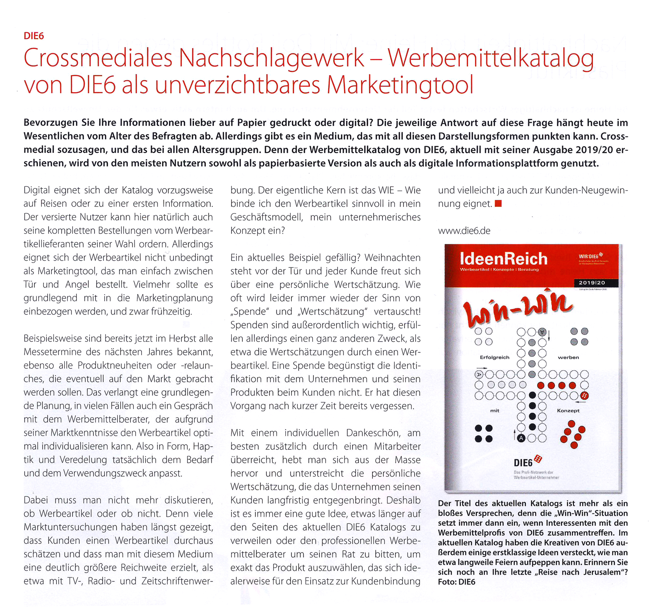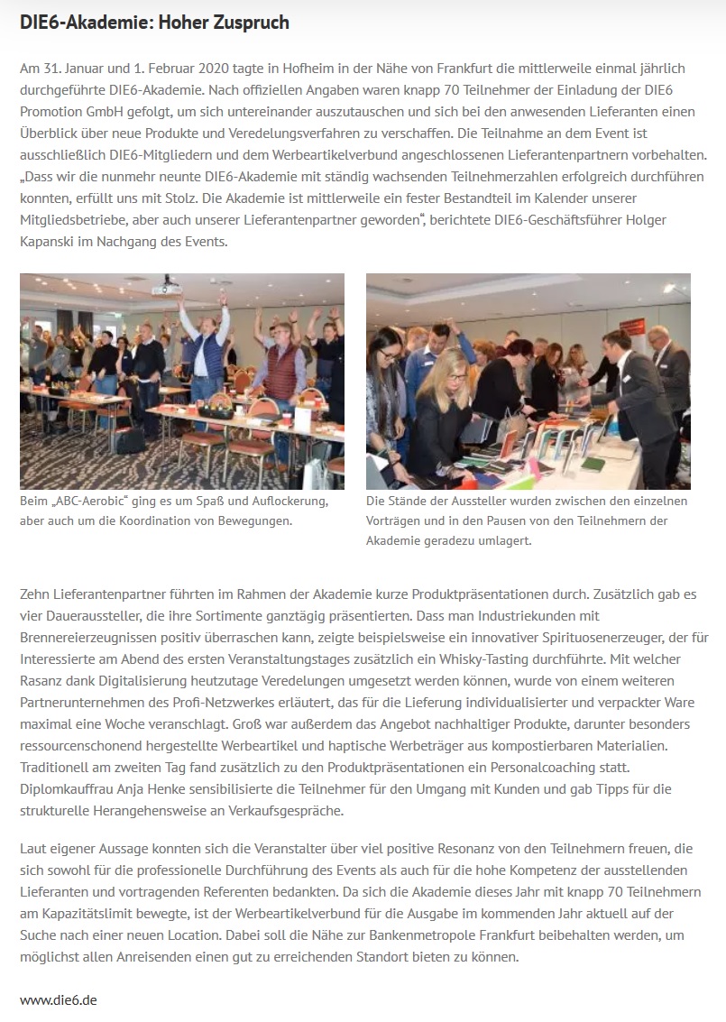 Im DIE6-Pressearchiv finden Sie zahlreiche Artikel und Informationen vom und über das Profi-Netzwerk der Werbeartikel-Unternehmer.