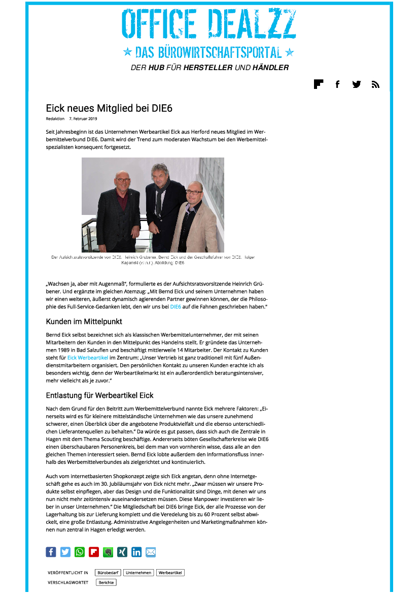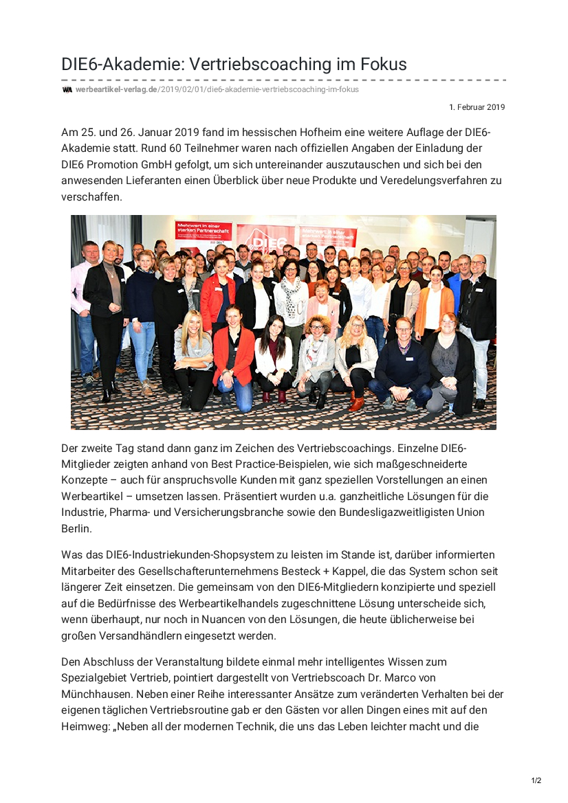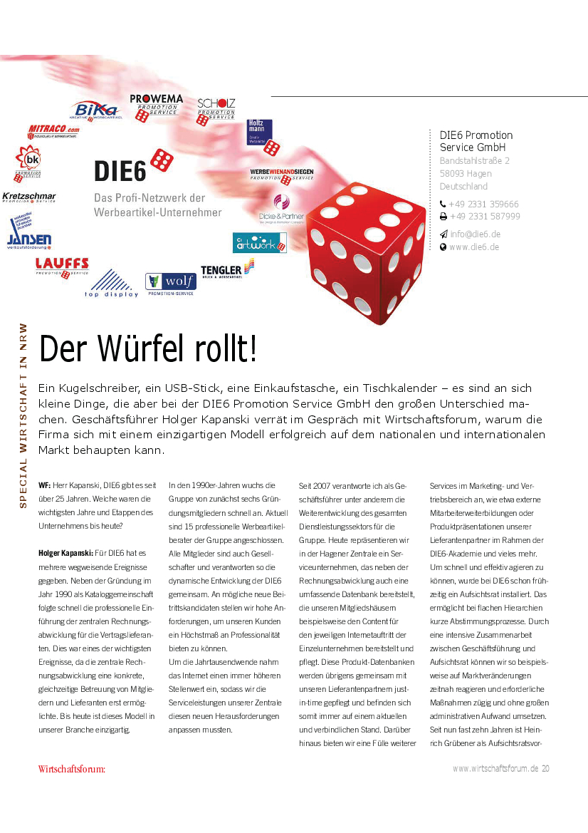Im DIE6-Pressearchiv finden Sie zahlreiche Artikel und Informationen vom und über das Profi-Netzwerk der Werbeartikel-Unternehmer.