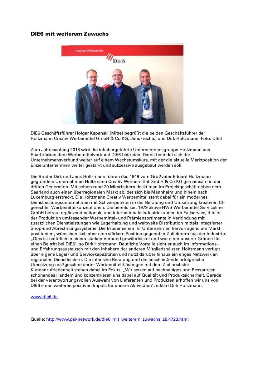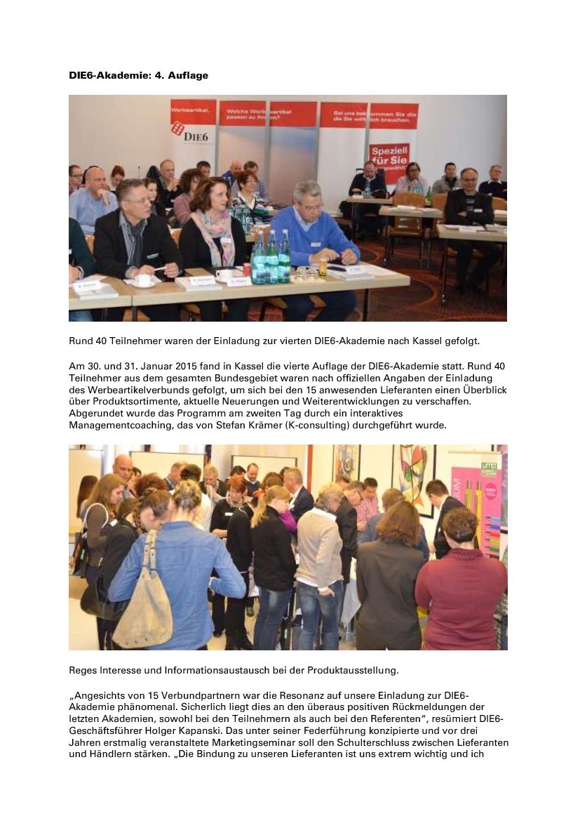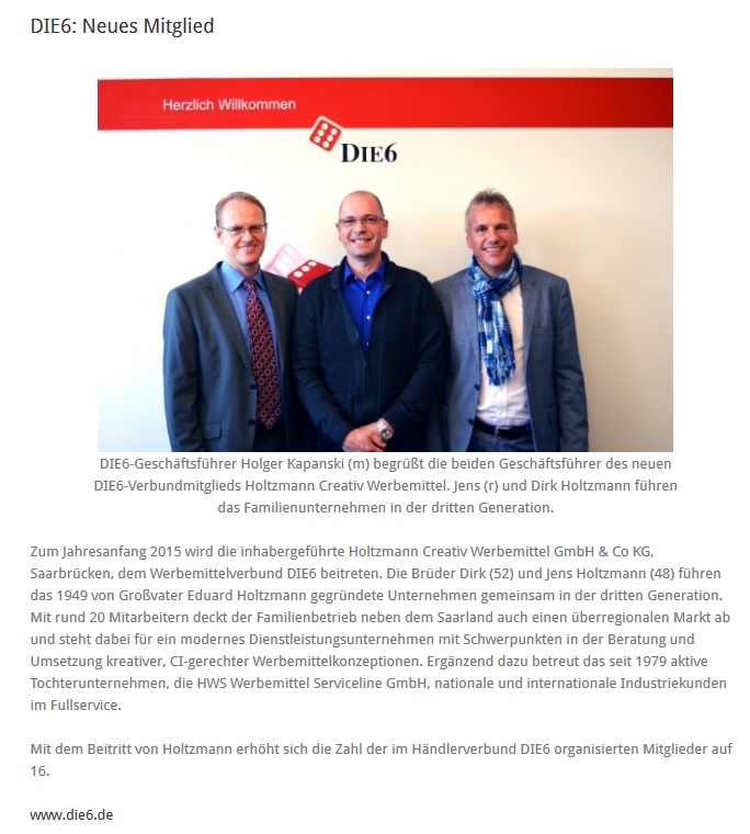 Im DIE6-Pressearchiv finden Sie zahlreiche Artikel und Informationen vom und über das Profi-Netzwerk der Werbeartikel-Unternehmer.