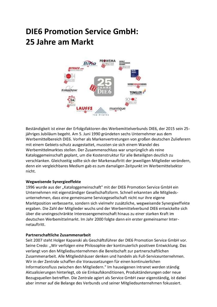 DIE6 Promotion Service GmbH: 25 Jahre am Markt