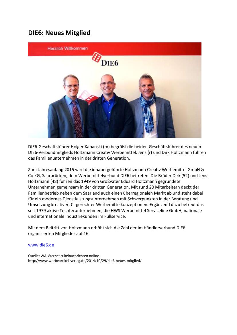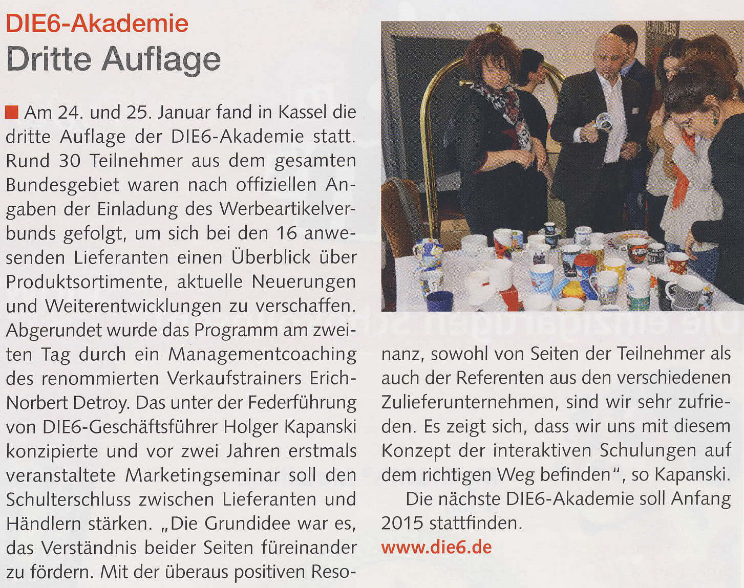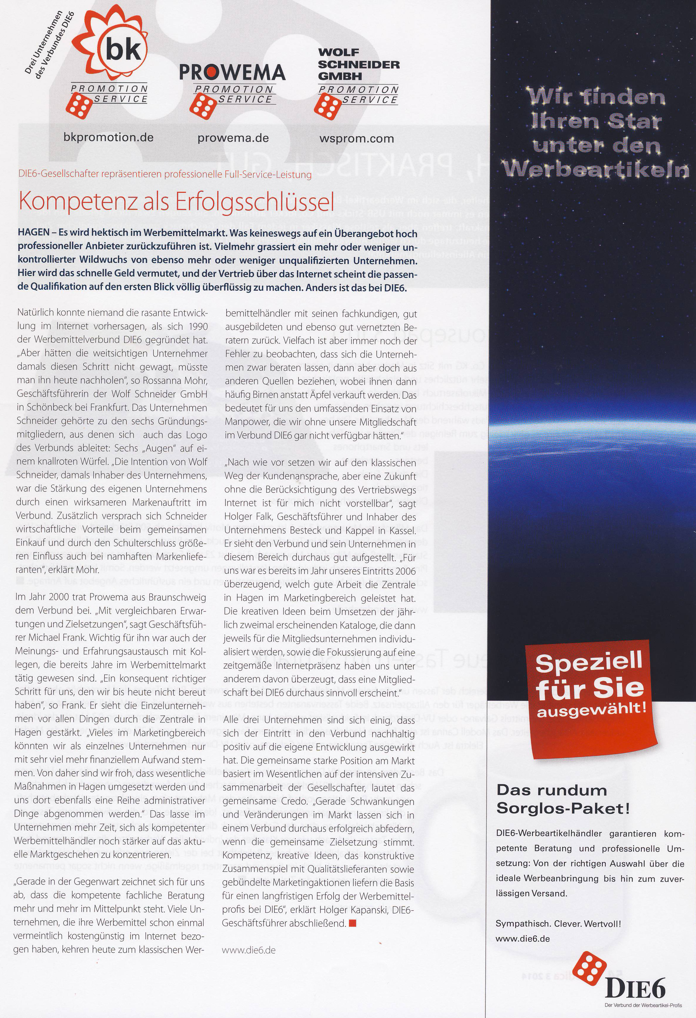 Im DIE6-Pressearchiv finden Sie zahlreiche Artikel und Informationen vom und über das Profi-Netzwerk der Werbeartikel-Unternehmer.