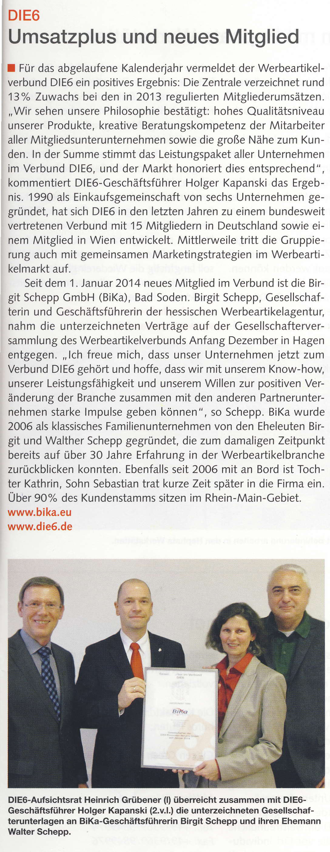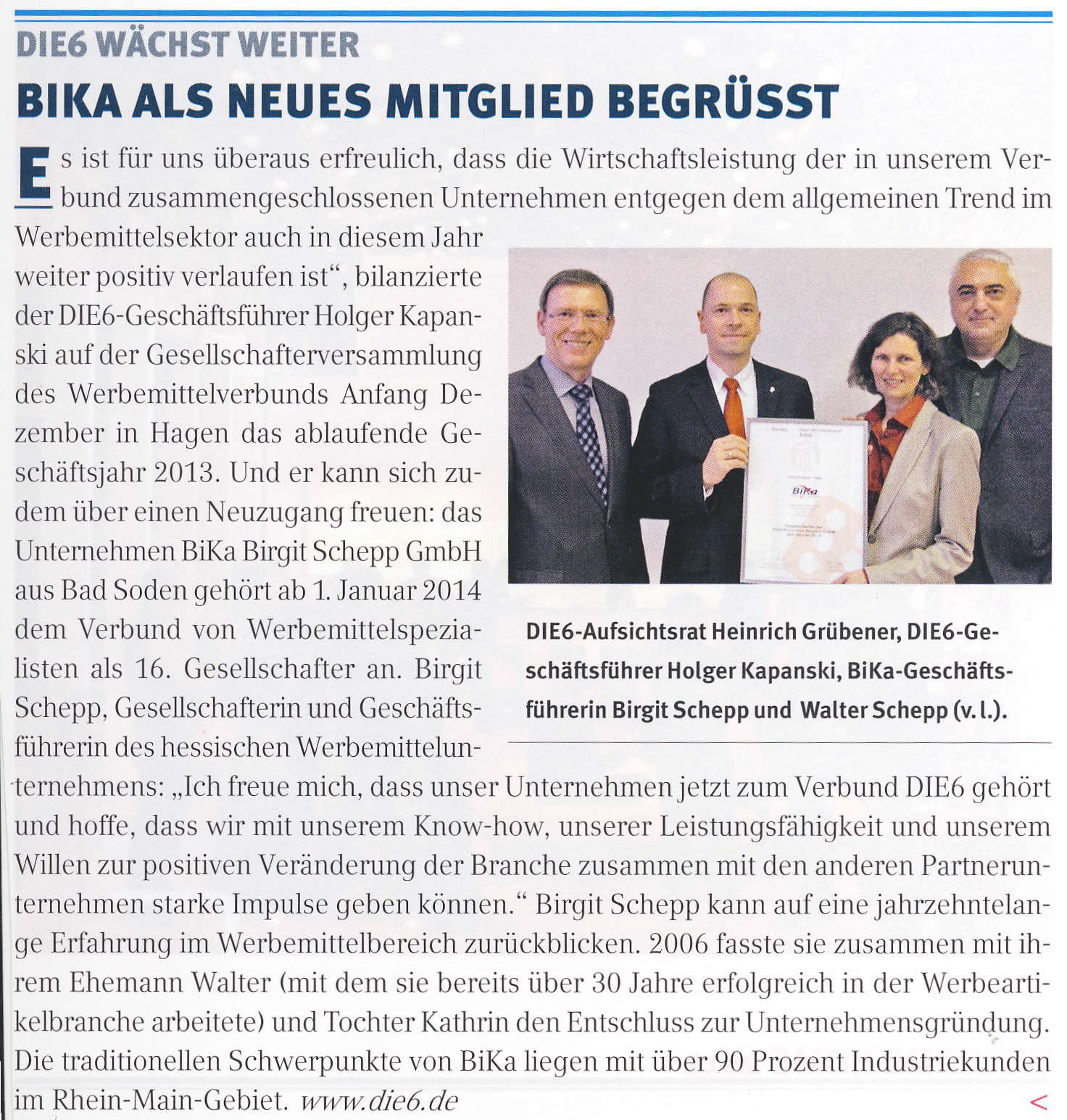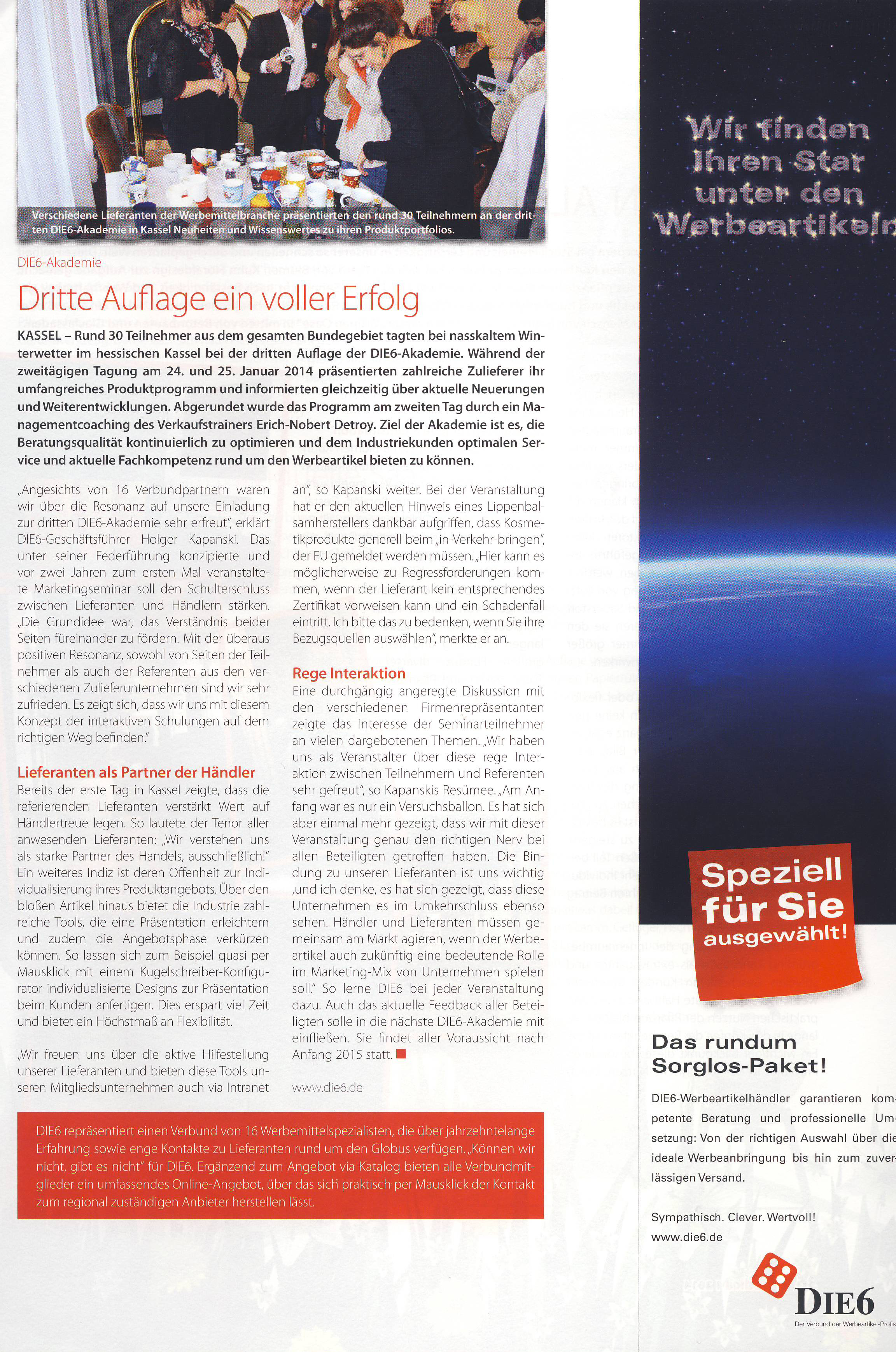 Im DIE6-Pressearchiv finden Sie zahlreiche Artikel und Informationen vom und über das Profi-Netzwerk der Werbeartikel-Unternehmer.