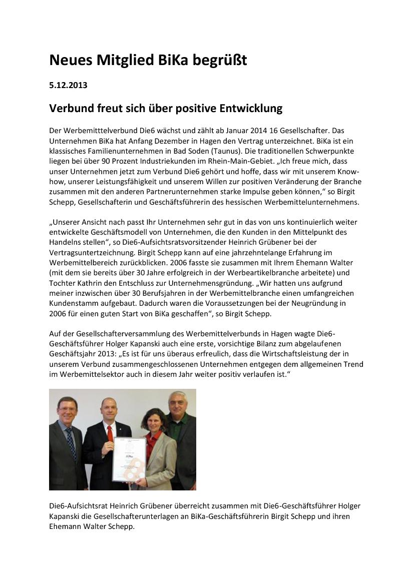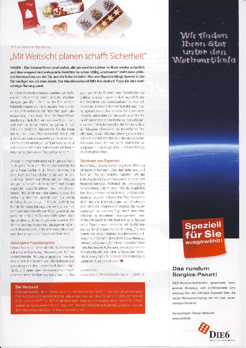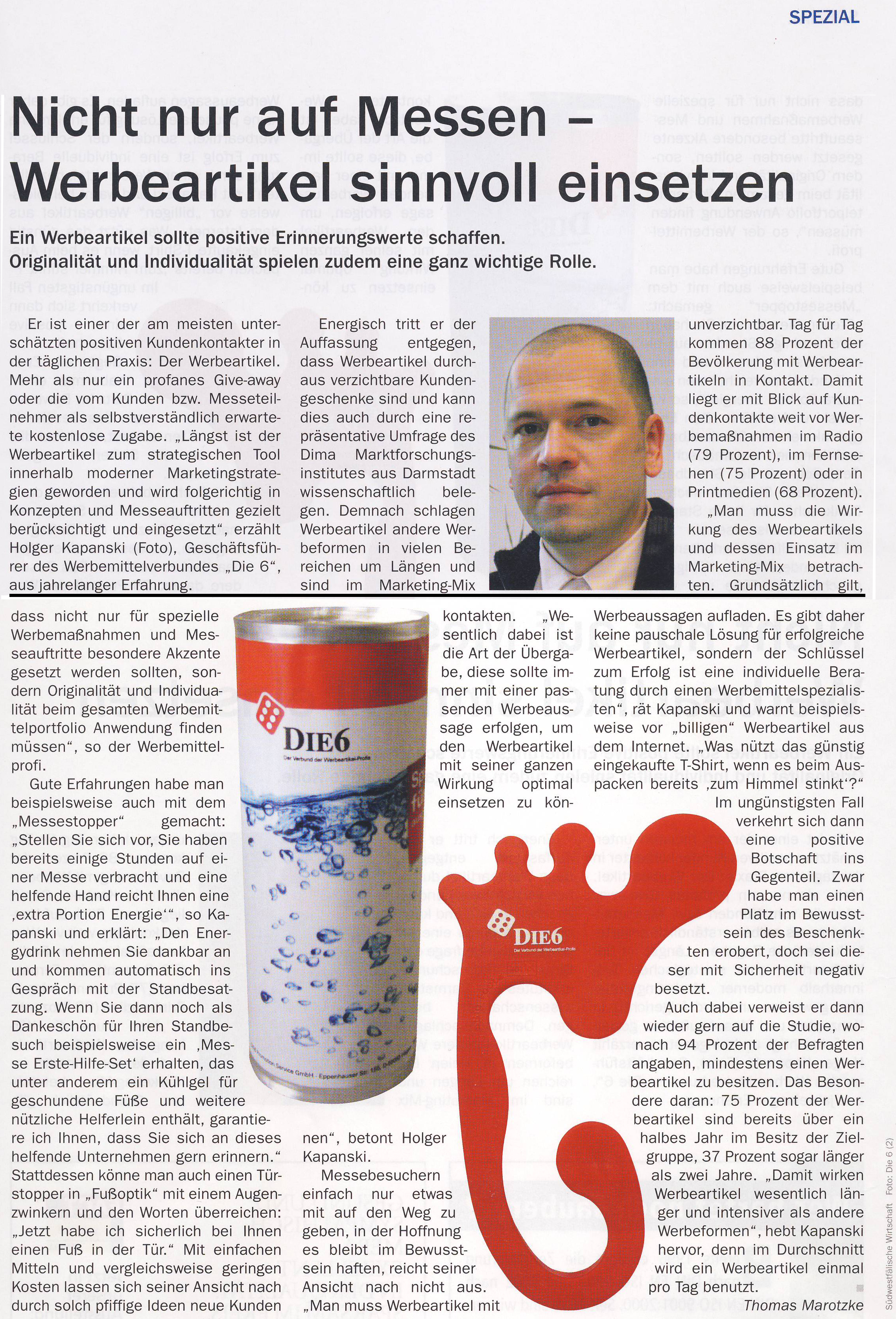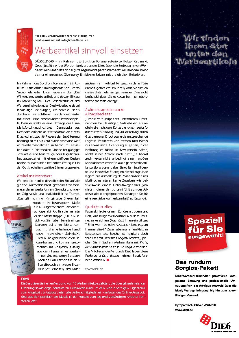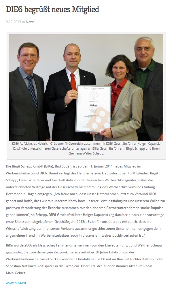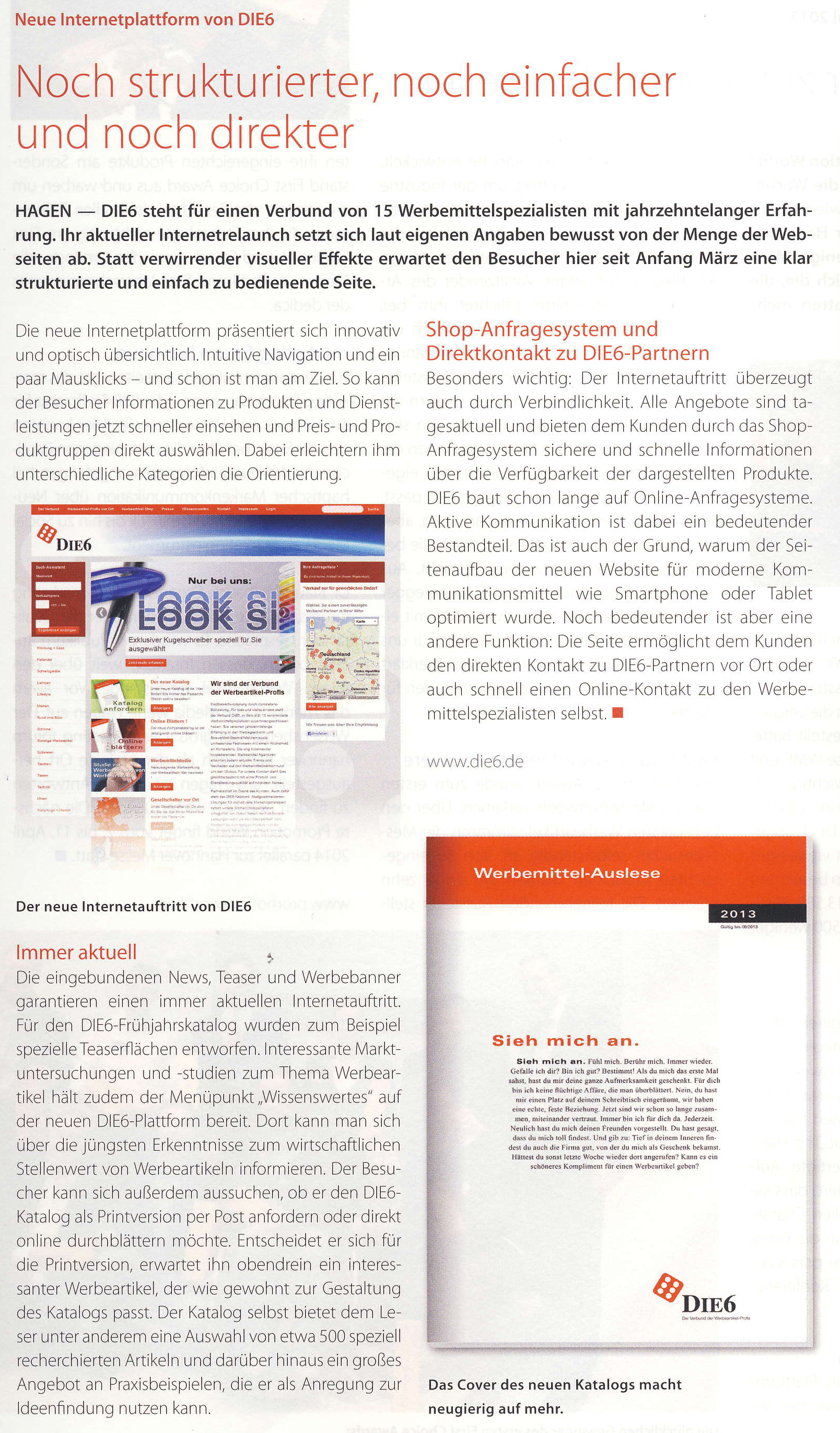 Im DIE6-Pressearchiv finden Sie zahlreiche Artikel und Informationen vom und über das Profi-Netzwerk der Werbeartikel-Unternehmer.