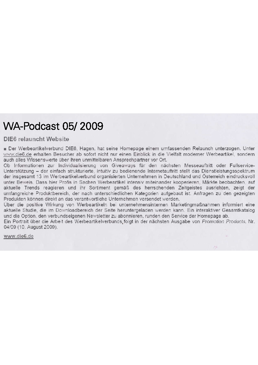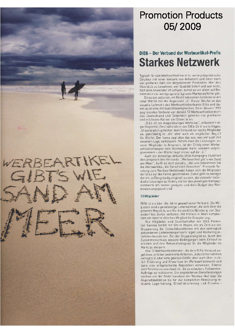 Im DIE6-Pressearchiv finden Sie zahlreiche Artikel und Informationen vom und über das Profi-Netzwerk der Werbeartikel-Unternehmer.