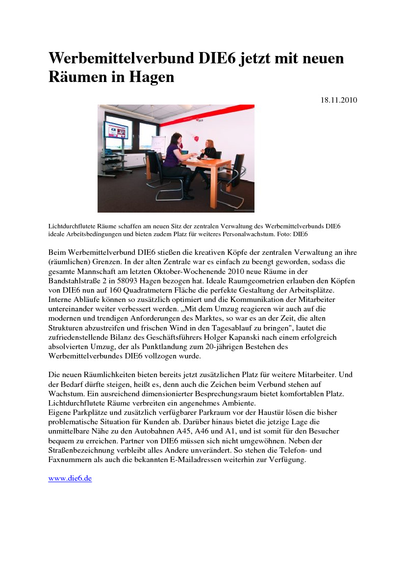 Werbemittelverbund DIE6 jetzt in neuen Räumen in Hagen