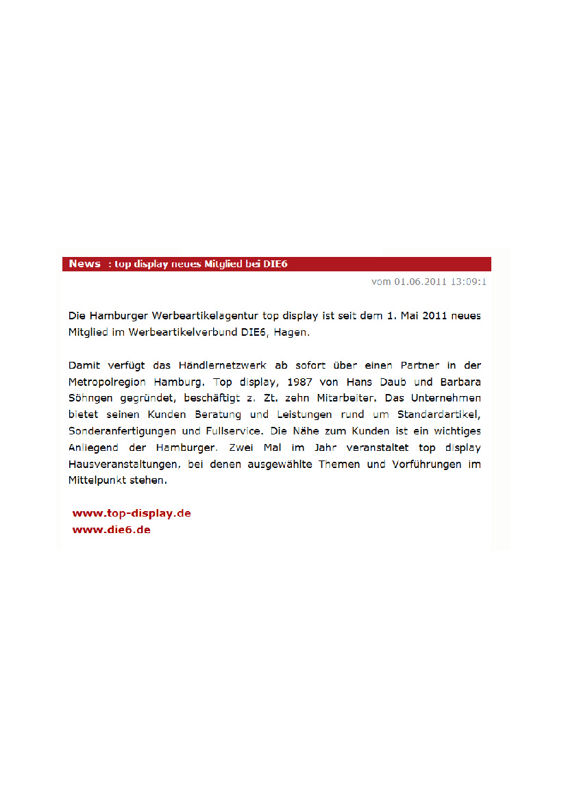 top display neues Mitglied im Verbund der DIE6 Promotion Service GmbH