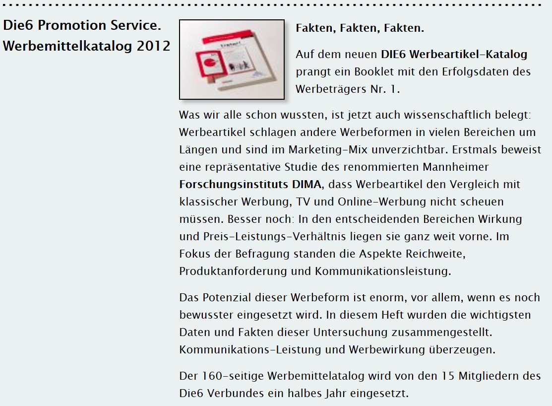 Praxisbericht über den DIE6 Promotion Service Herbstkatalog 2012 Der Katalog mit Mehrwert !