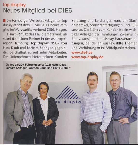 top display neues Mitglied im Verbund der DIE6 Promotion Service GmbH
