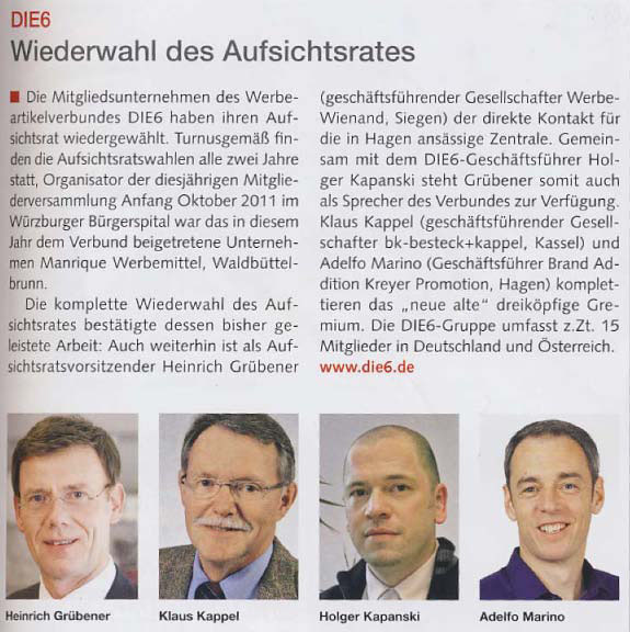 Im DIE6-Pressearchiv finden Sie zahlreiche Artikel und Informationen vom und über das Profi-Netzwerk der Werbeartikel-Unternehmer.