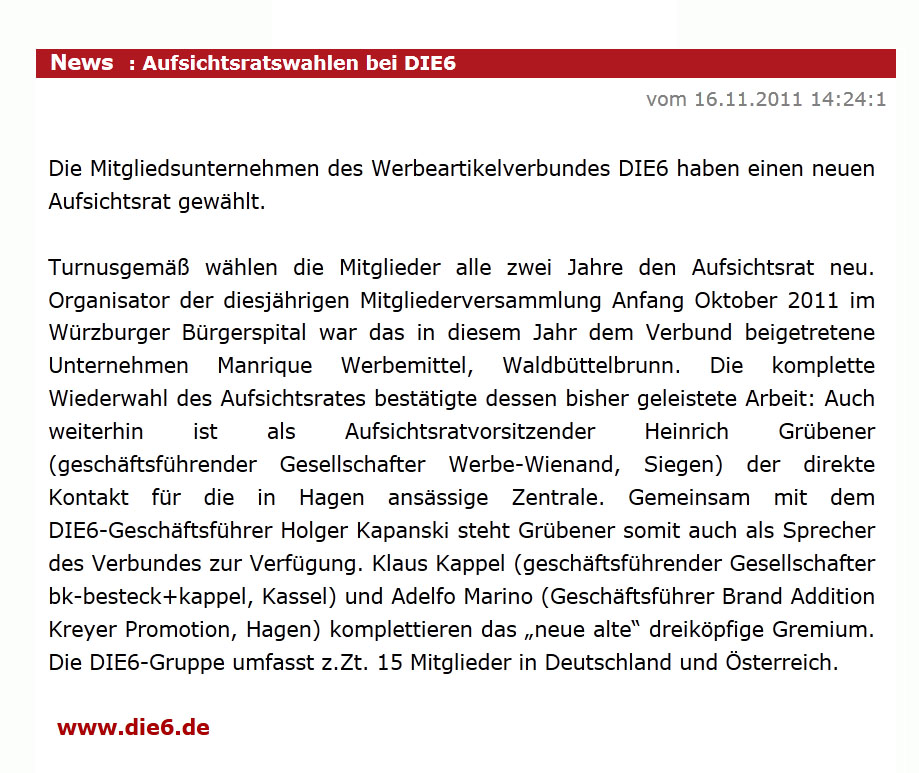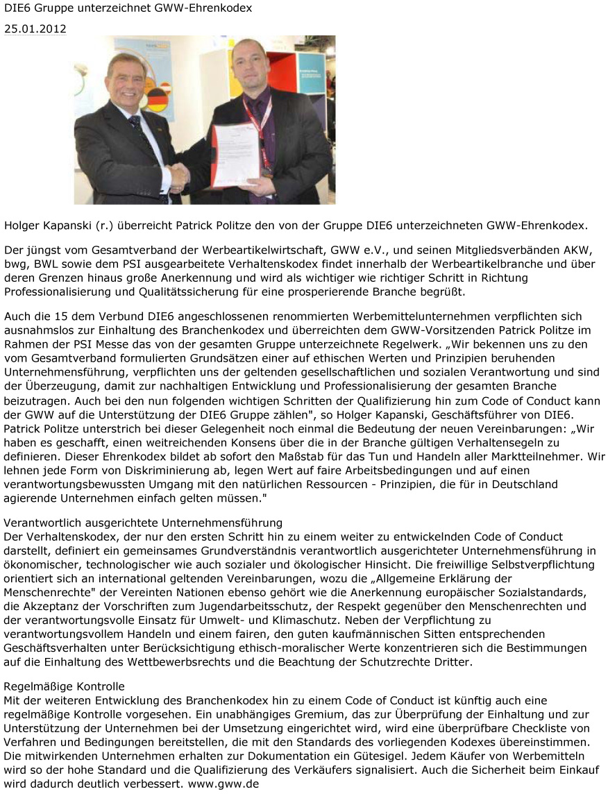 Pressemeldungen Werbeartikel DIE6
